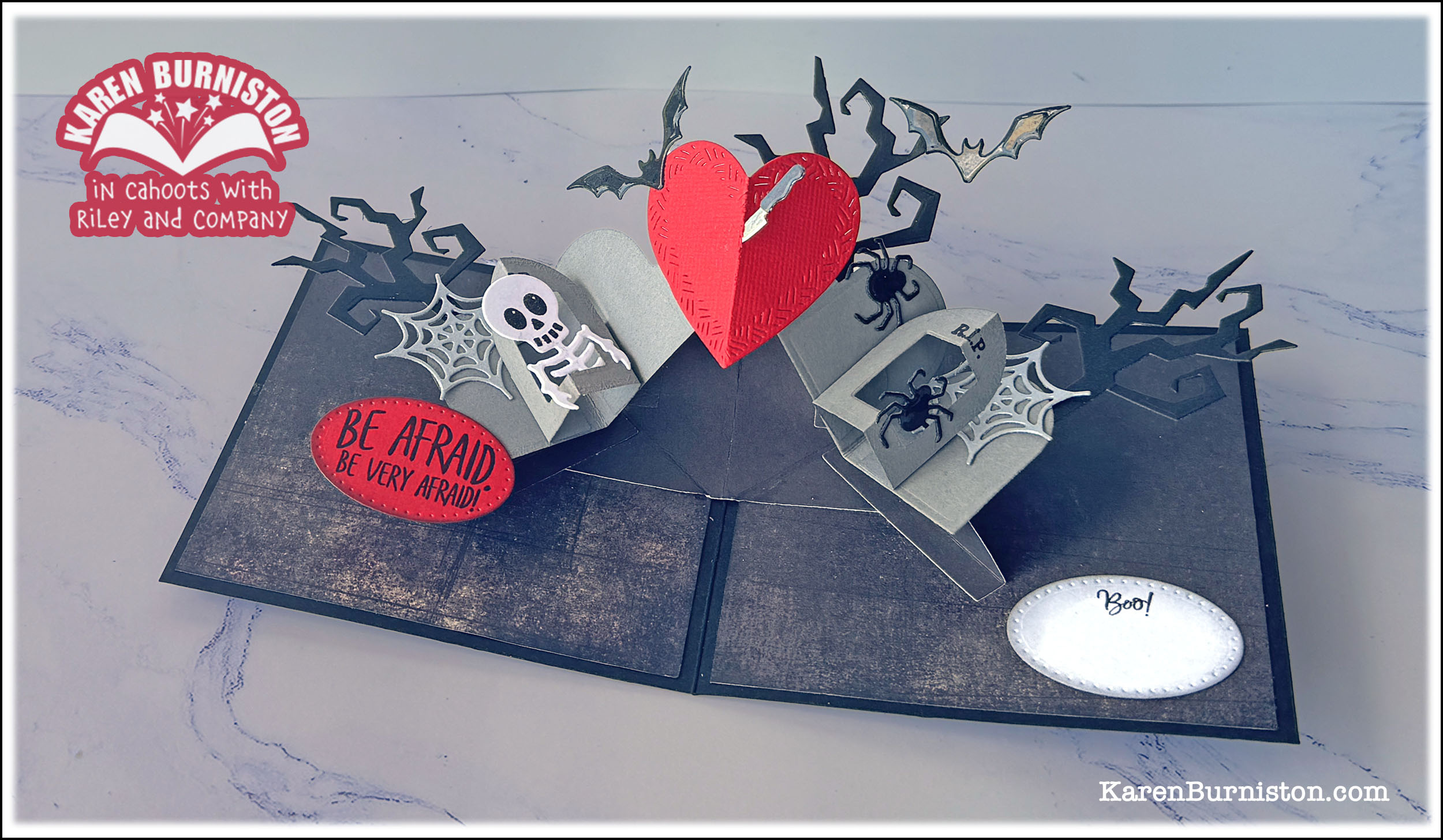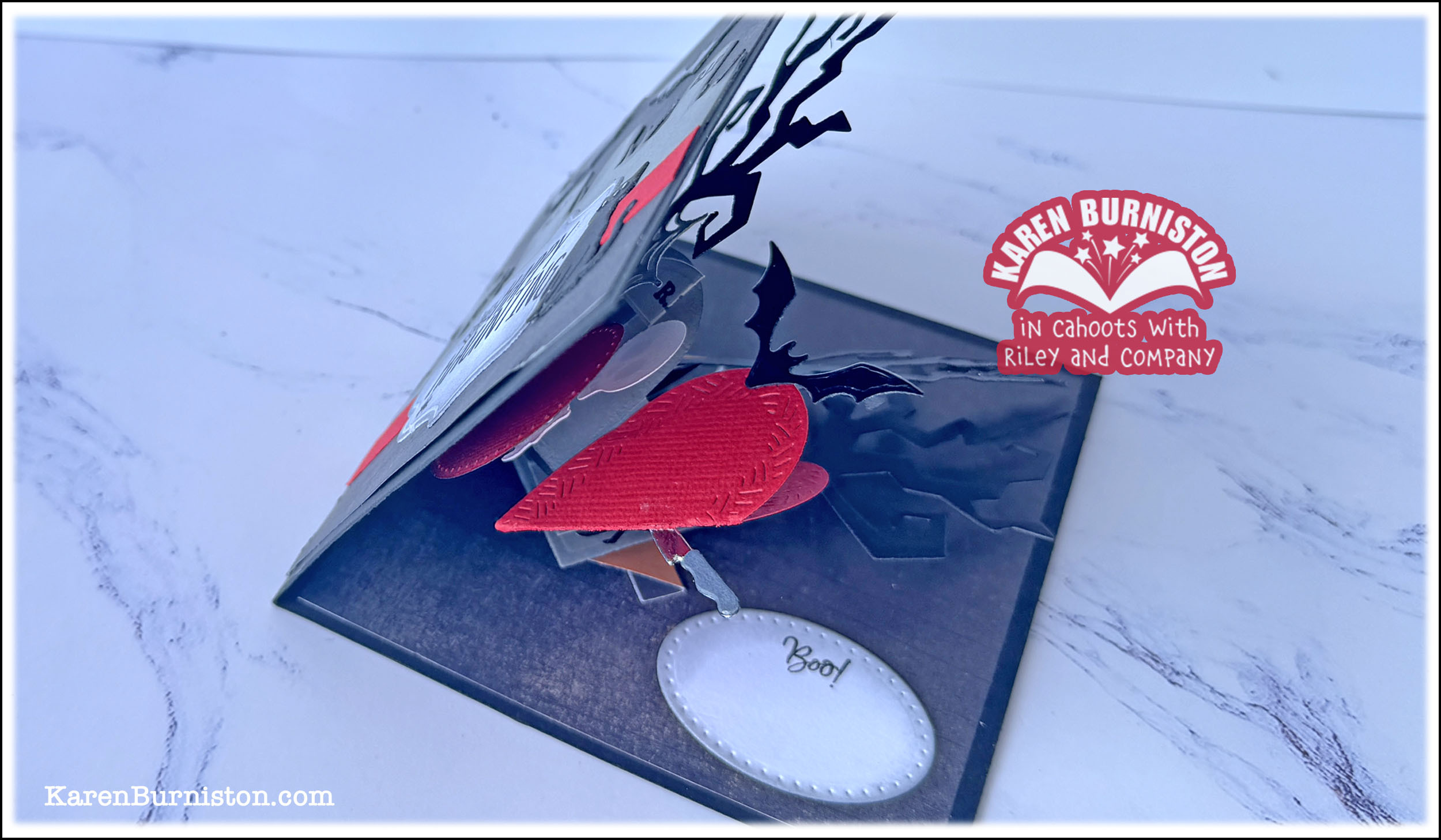 For my card and video I am teaching an alternate assembly of the Stocking Pop-up decorated as a macabre Halloween tableau.
