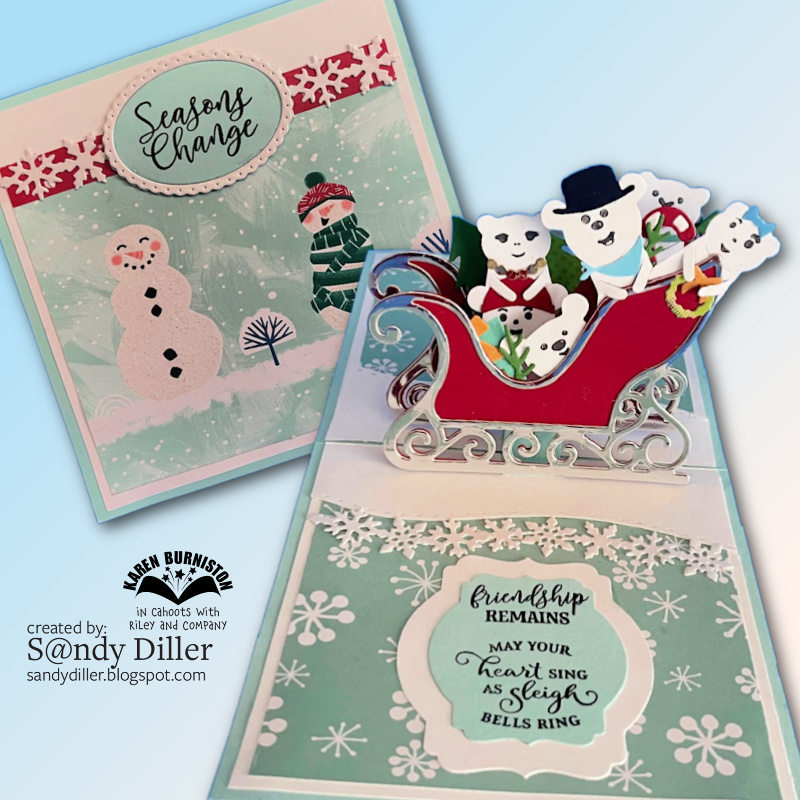 Sandy Diller filled our Sleigh Pop-up with a crew of polar bears with fun faces. I love the personality that she created with the different faces and fun accessories. Click over for a video of this card in action.