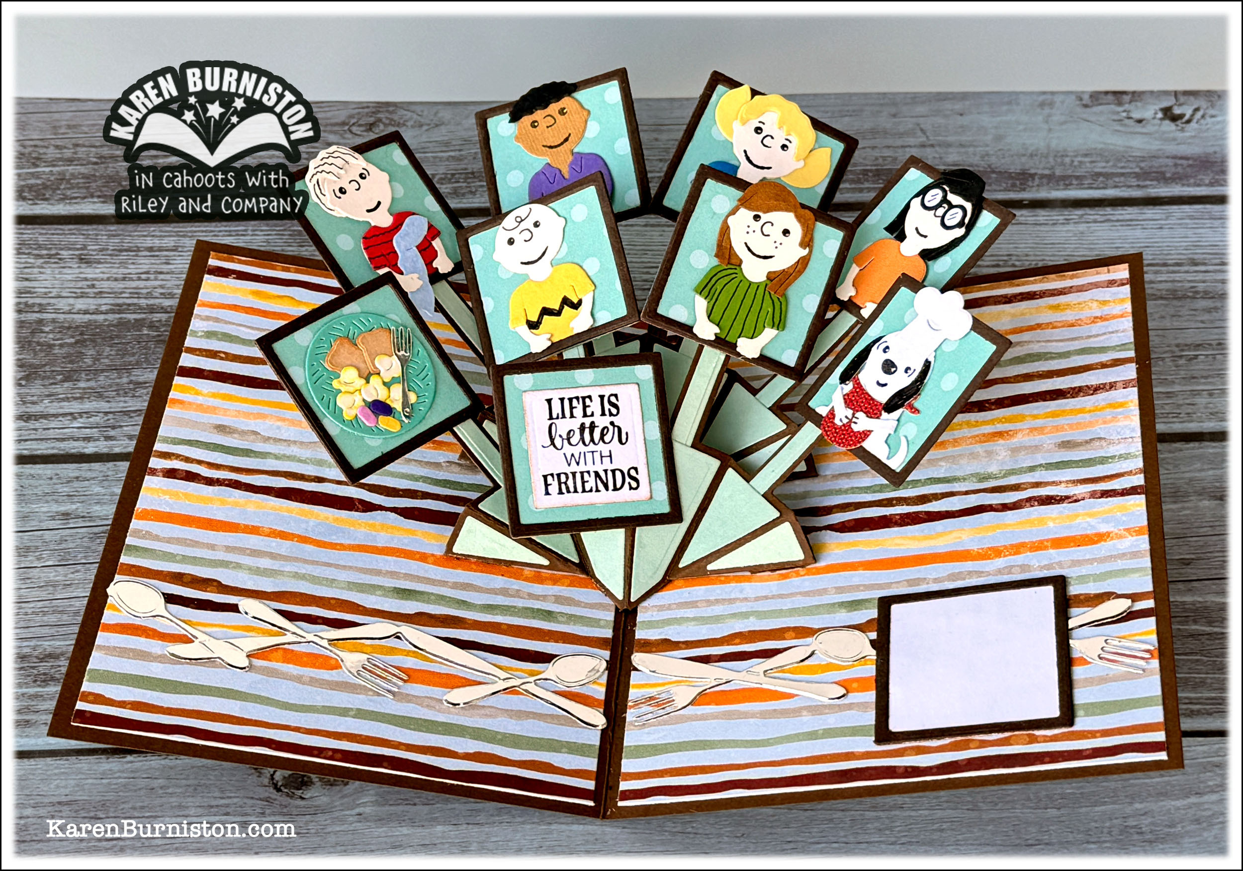 For my card and video I have styled our Paper People die set as Charlie Brown and the gang along with their famous Thanksgiving meal.