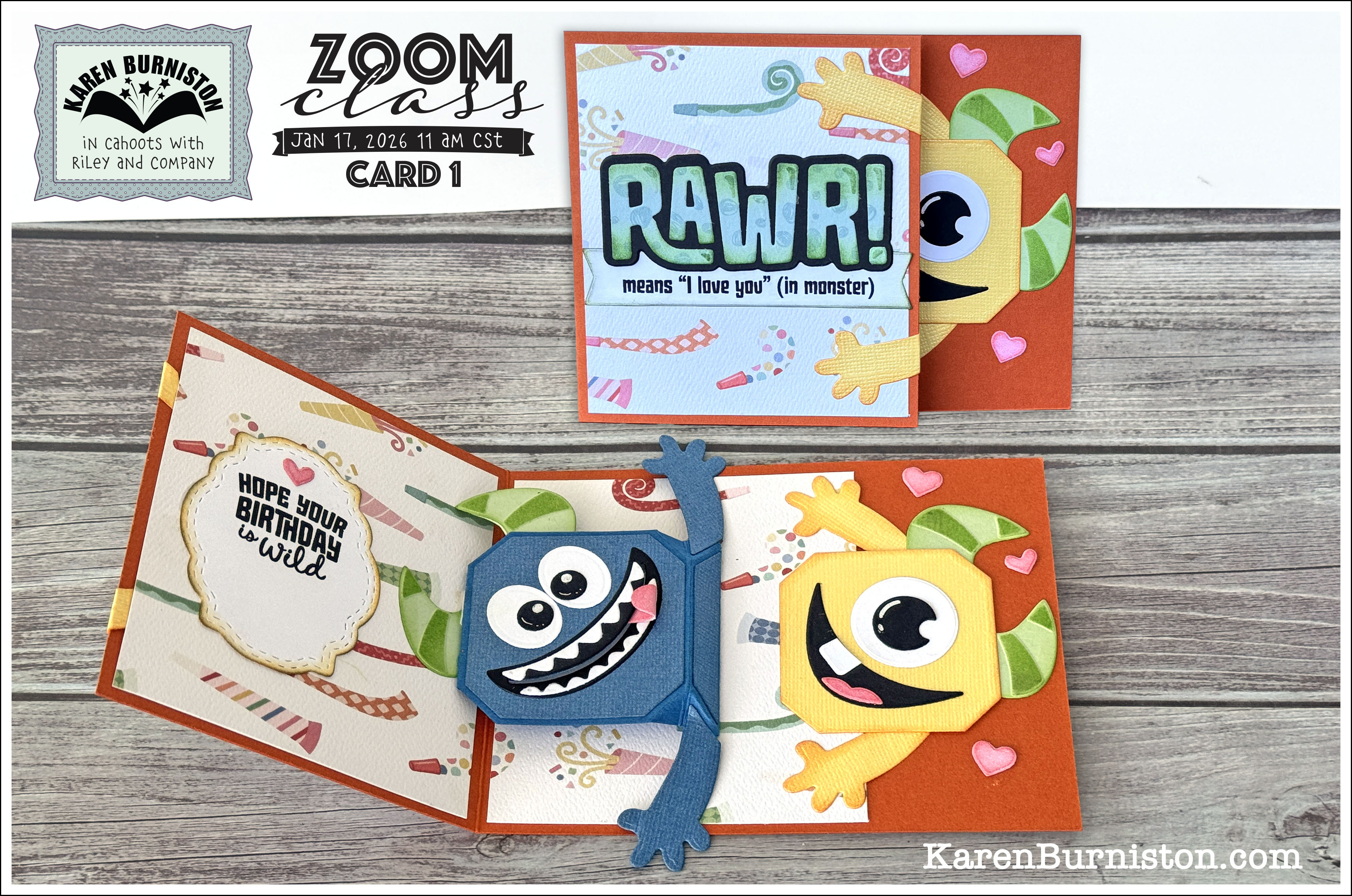 REQUIRED DIES: Pine Cone, Greeting Labels, Rawr and Monster Playful Add-onsREQUIRED FOUNDATION DIE: Playful Pop-upA limited number of January Zoom Class kits are available here:MAX KitCLASS Kit January Zoom class kits are also available through these participating stores:Scrapp'n Savvy (TX) Dutch Paper Crafts (NY)Stamped Designs (NH)Creative Pals (WI)Scrapbooks by the Sea (SC)Impressing Ideas (WA)Stamps and Cards (Netherlands) Learn about how our Zoom Classes work by watching this short Project Preview video:Tanya's TakeOne of a Kind Rubber Stamp and Scrapbook Virtual EventJanuary 24, 2026 Time: TBD