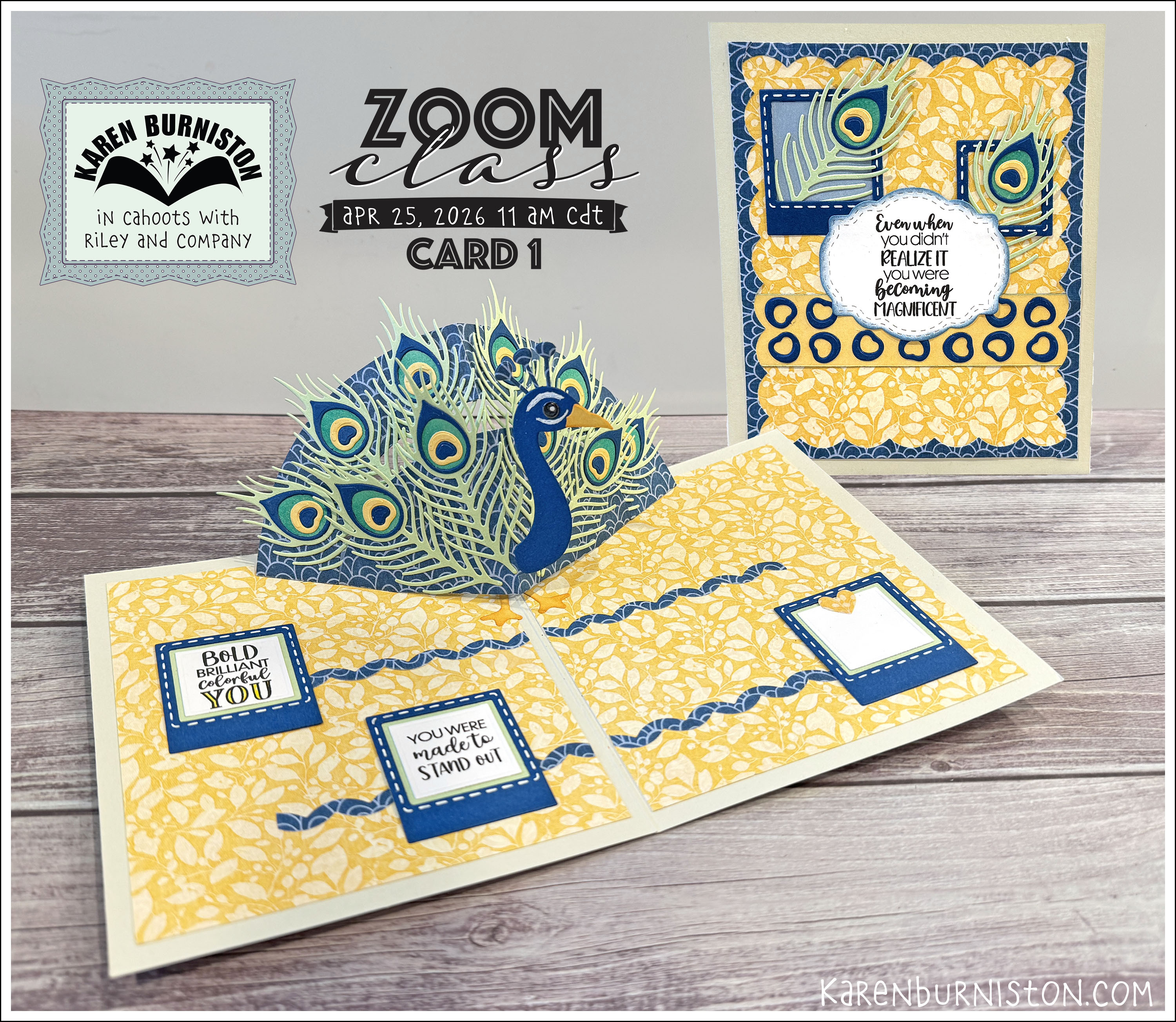 REQUIRED DIES: Peacock Add-ons, Photo Gallery Pop-up, Sea Stage Add-onsREQUIRED FOUNDATION DIES (SEPARATE PURCHASE): Arch Pop-upA limited number of April Zoom Class kits will be available in our Kits and Classes area when they are ready to ship. April Zoom class kits are also available through these participating stores:Scrapp'n Savvy (TX) Dutch Paper Crafts (NY)Stamped Designs (NH)Creative Pals (WI)Scrapbooks by the Sea (SC)Impressing Ideas (WA)Stamps and Cards (Netherlands) Learn more about this class by watching this short preview video:MayOne of a Kind Rubber Stamp and Scrapbook Virtual EventMay 2nd TBD